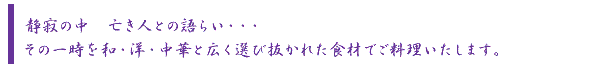会場・料理・引き菓子・盛花をはじめ法要に必要な全てをご準備いたします。